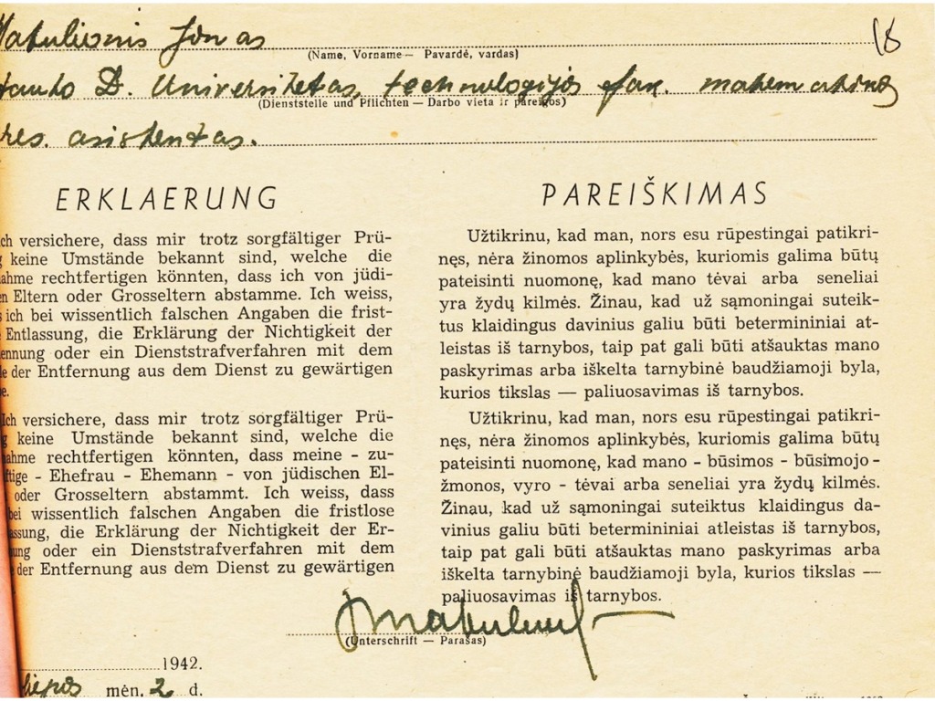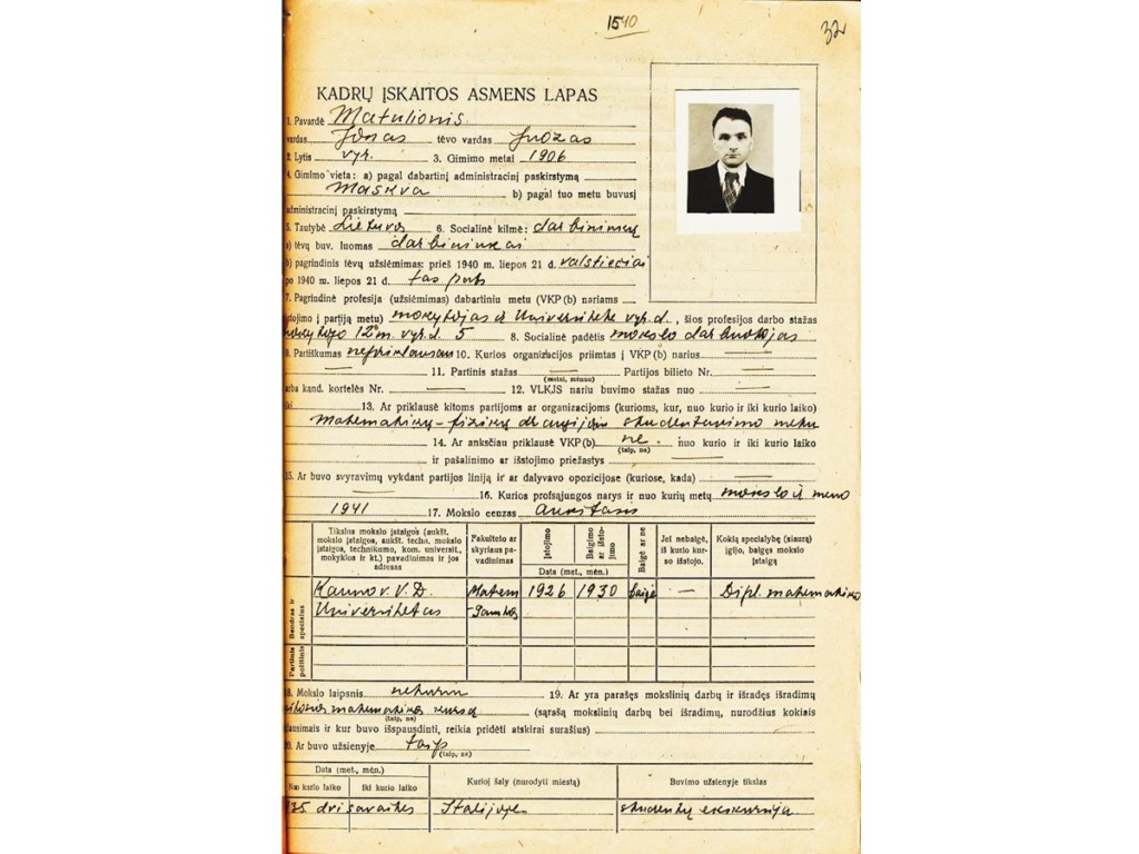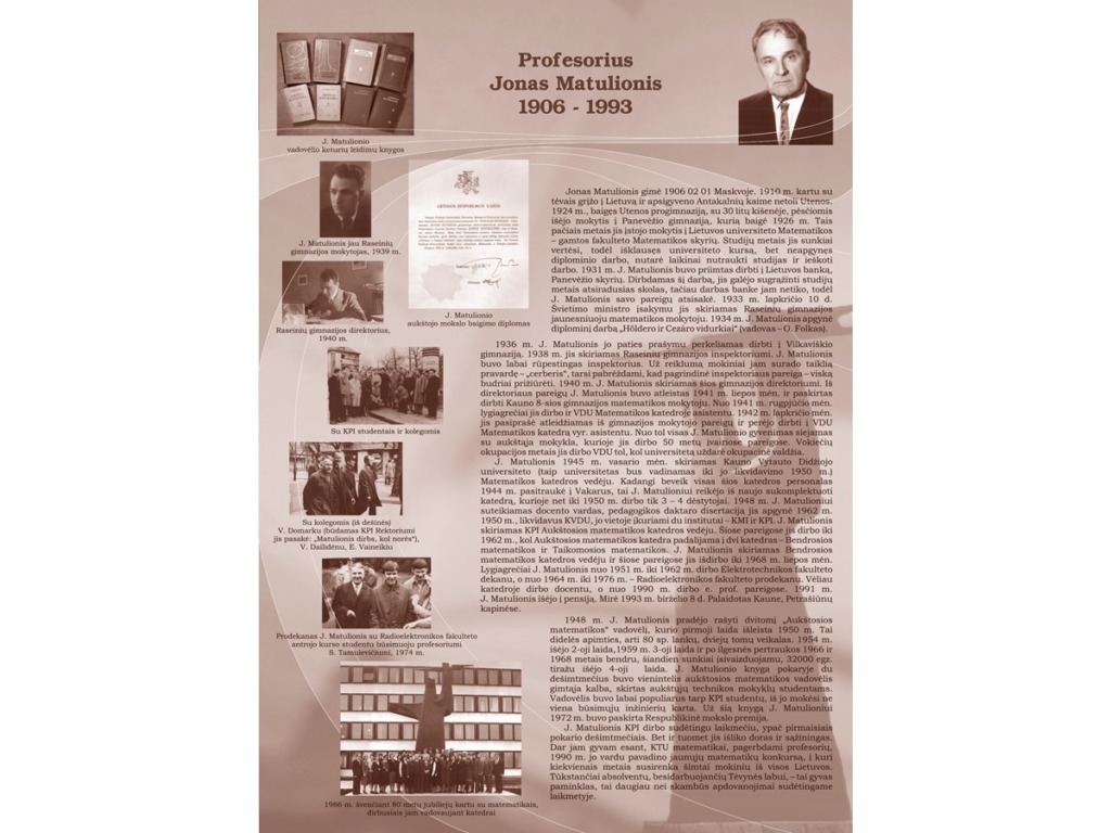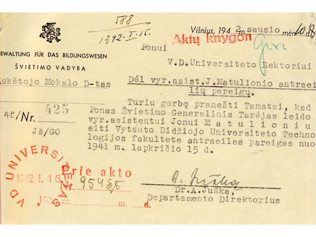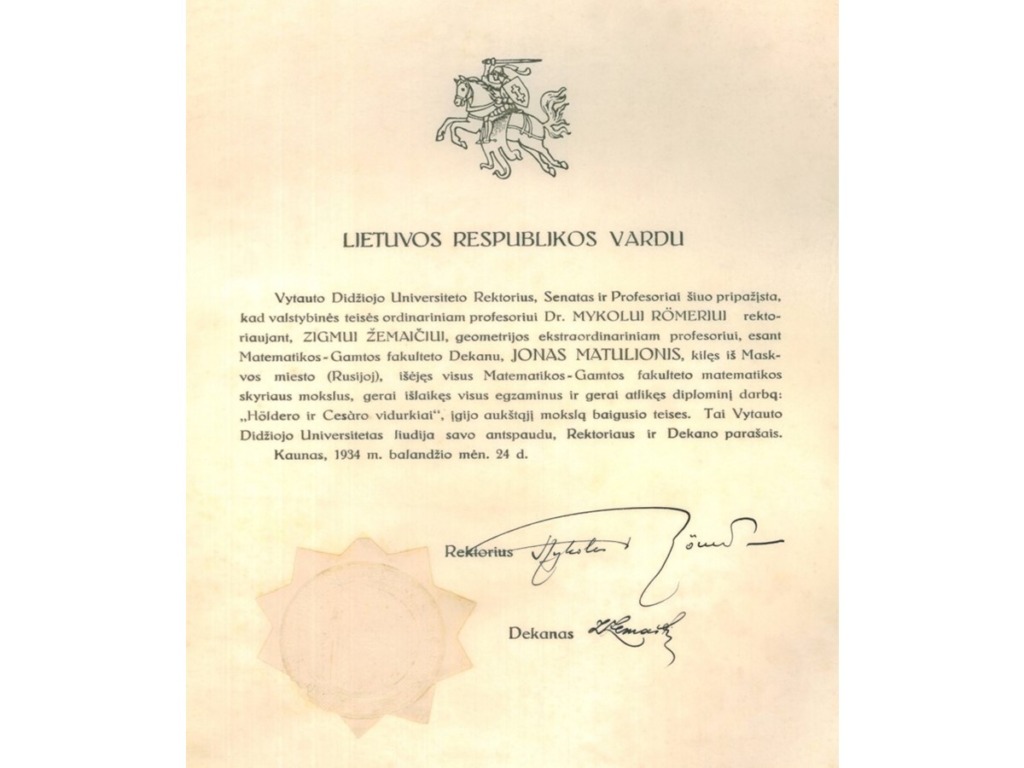 Jonas Matulionis gimė 1906 m. vasario 1 d. Maskvoje. 1910 m. kartu su tėvais grįžo į Lietuvą ir apsigyveno Antakalnių kaime netoli Utenos. Išvykus tėvui uždarbiauti į JAV, šeima gyveno skurdžiai. Padėtis dar pablogėjo, kai, susirgusi šiltine, motina mirė. Nuo tada Joną Matulionį ir jo vyresnį brolį, likusius našlaičiais, globojo giminės. J. Matulionis, baigęs pradinę mokyklą, pradėjo mokytis Utenos progimnazijoje, į kurią iš Antakalnių kaimo 5 metus vaikščiojo pėsčiomis. 1924 m., baigęs Utenos progimnaziją, su trisdešimčia litų kišenėje, pėsčiomis išėjo mokytis į Panevėžio gimnaziją, kurią baigė 1926 m. Po gimnazijos baigimo tais pačiais metais jis įstojo mokytis į Lietuvos universiteto Matematikos–gamtos fakulteto Matematikos skyrių. Studijų metais J. Matulioniui teko pragyventi tik iš to, kiek paremdavo vyresnis brolis ir kiek užsidirbdavo pats privačiomis pamokomis. Studijų metais J. Matulionis susirgo. Nors pavėluota apendicito operacija pavyko, tačiau liga bei pilnas nepriteklių gyvenimas jį išvargino taip, kad jis nebegalėjo toliau mokytis. Todėl jis, išklausęs universiteto kursą, bet neapgynęs diplominio darbo, nutarė laikinai nutraukti studijas ir ieškoti darbo. 1931 m. J. Matulionis buvo priimtas dirbti į Lietuvos banko Panevėžio skyrių. Tačiau šis darbas, nors ir leido sugrąžinti studijų metais atsiradusias skolas, jam neteikė moralinio pasitenkinimo, todėl J. Matulionis nutarė jo atsisakyti. 1933 m. lapkričio 10 d. švietimo ministro įsakymu jis paskirtas Raseinių gimnazijos jaunesniuoju matematikos mokytoju. 1934 m. J. Matulionis apgynė diplominį darbą „Höldero ir Cezàro vidurkiai“ (vadovas – O. Folkas). 1936 m. J. Matulionis jo paties prašymu perkeltas dirbti į Vilkaviškio gimnaziją. 1938 m. jis paskirtas Raseinių gimnazijos inspektoriumi. J. Matulionis buvo labai rūpestingas inspektorius. Už reiklumą mokiniai jam surado taiklią pravardę – „cerberis“, tarsi pabrėždami, kad pagrindinė inspektoriaus pareiga – viską budriai prižiūrėti. 1940 m., sovietų valdžiai suėmus Raseinių gimnazijos direktorių, J. Matulionis buvo paskirtas šios gimnazijos direktoriumi. Iš direktoriaus pareigų J. Matulionis buvo atleistas 1941 m. liepos mėnesį ir paskirtas dirbti Kauno 8-osios gimnazijos matematikos mokytoju. Nuo 1941 m. rugpjūčio mėnesį kartu jis dirbo ir VDU Matematikos katedroje asistentu. 1942 m. lapkritį jis pasiprašė atleidžiamas iš gimnazijos mokytojo pareigų ir perėjo dirbti į VDU Matematikos katedrą vyr. asistento pareigose. 1942/43 m. m. jis jau skaitė paskaitas farmacininkams. 1945 m. vasarį jis paskirtas Kauno valstybinio Vytauto Didžiojo universiteto Matematikos katedros vedėju. Kadangi beveik visas šios katedros personalas 1944 m. pasitraukė į Vakarus, jam reikėjo iš naujo sukomplektuoti katedrą, kurioje net iki 1950 m. dirbo tik 3–4 dėstytojai. 1948 m. J. Matulioniui suteiktas docento vardas.